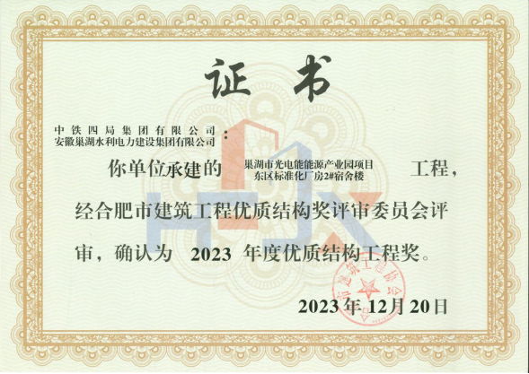 優質結構工程獎證書