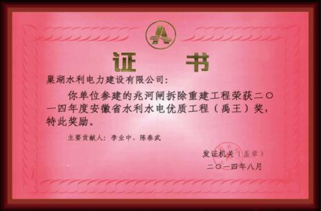 “禹王獎”證書