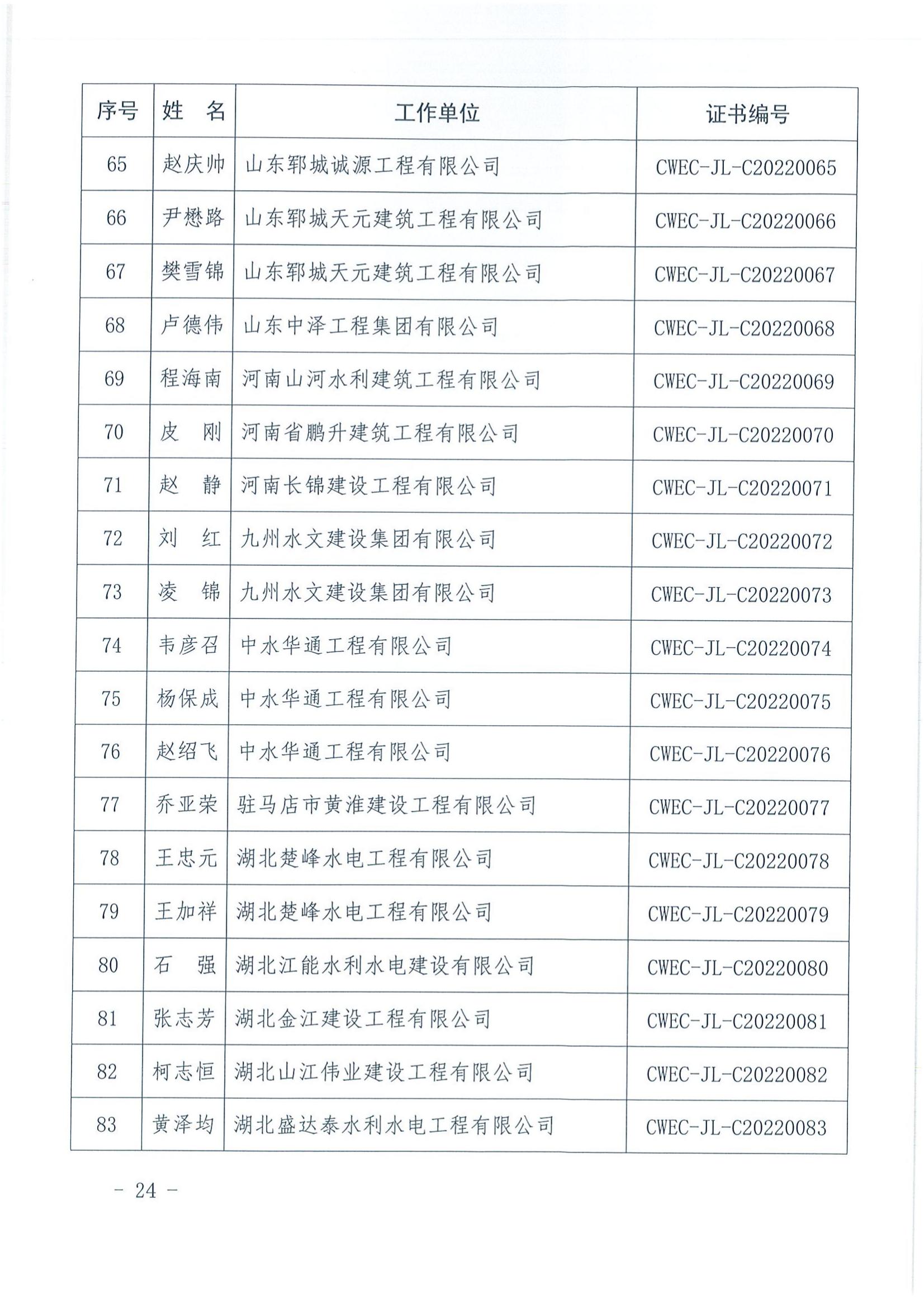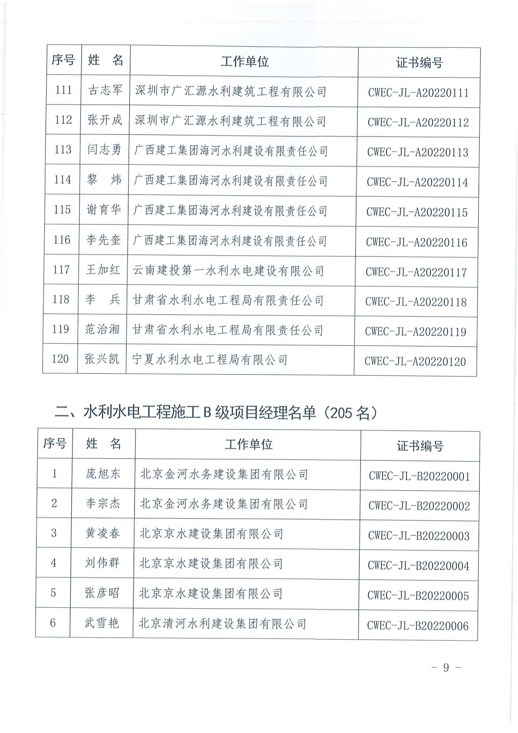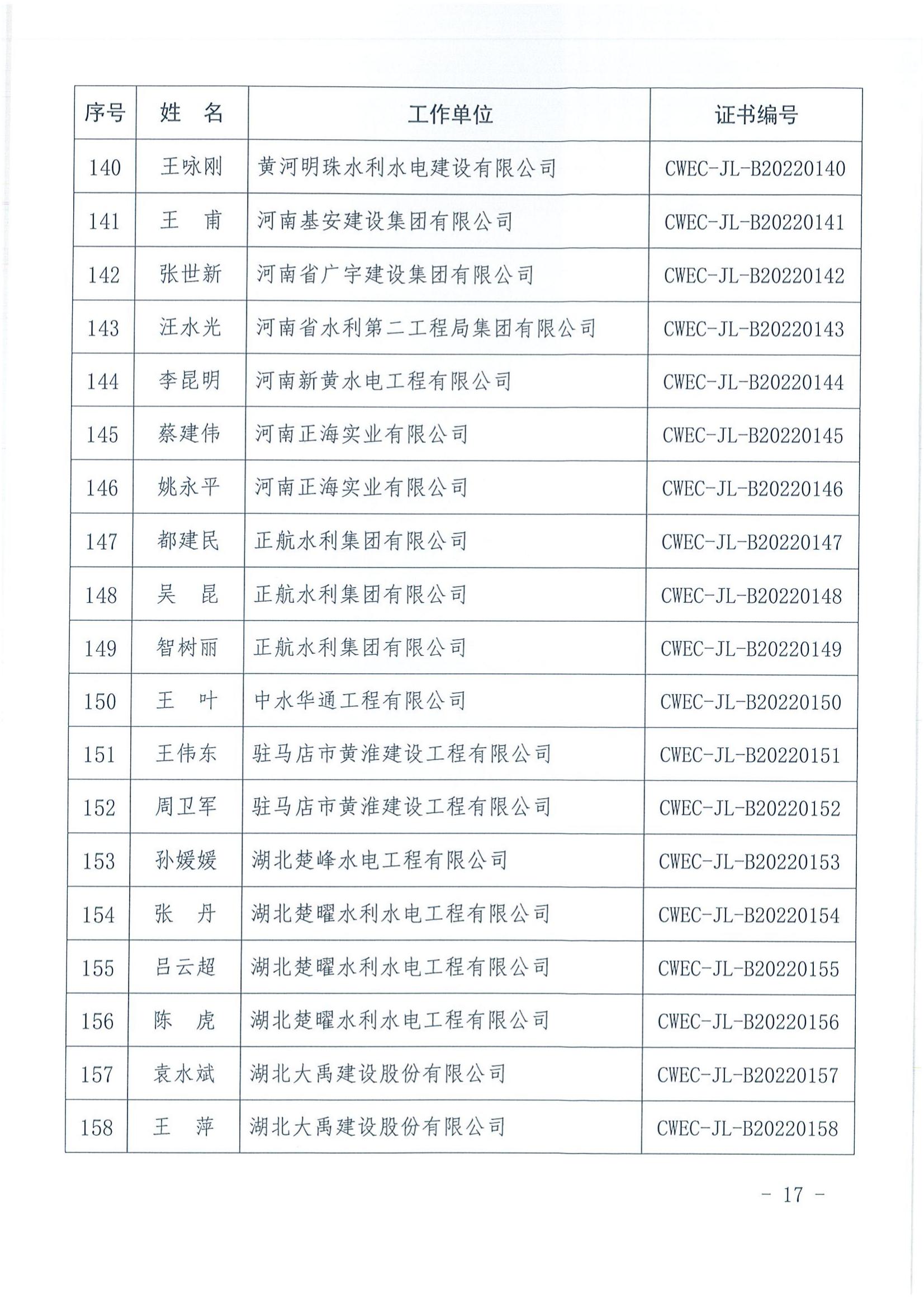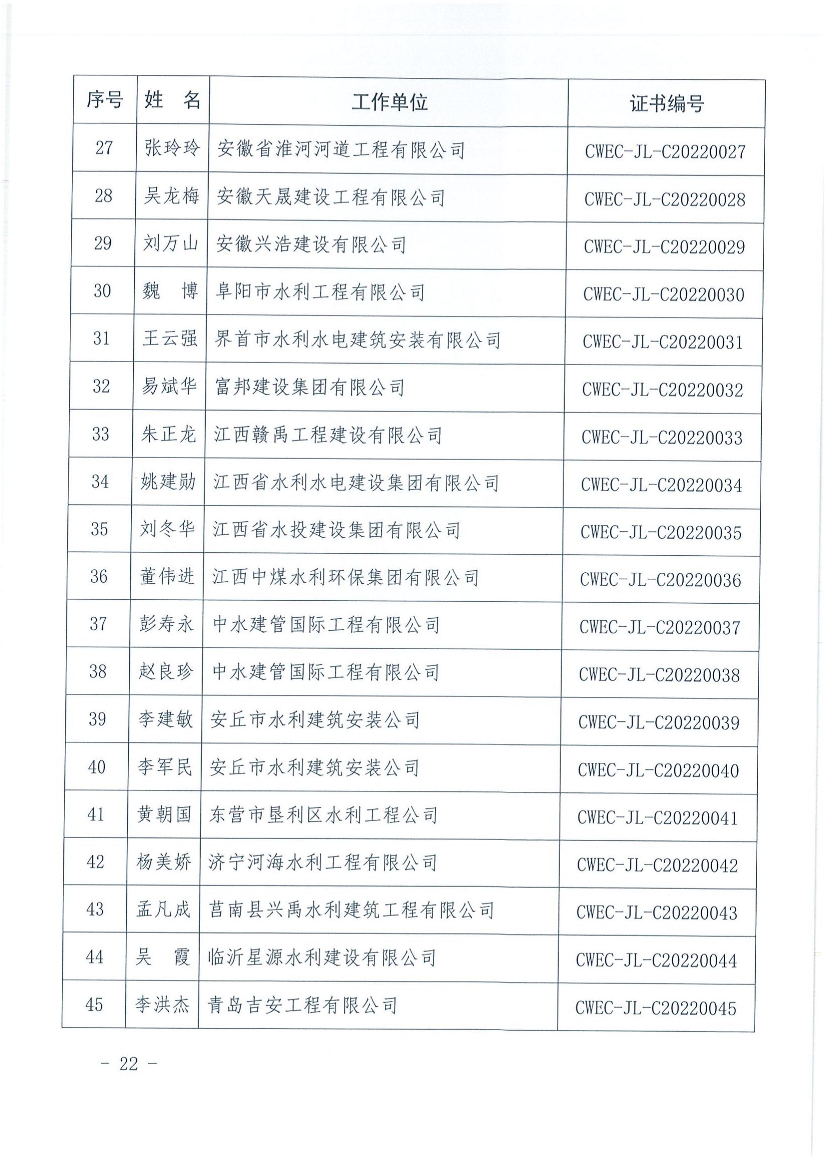 轉發關于公布2022年水利水電工程施工項目經理評價結果的通知