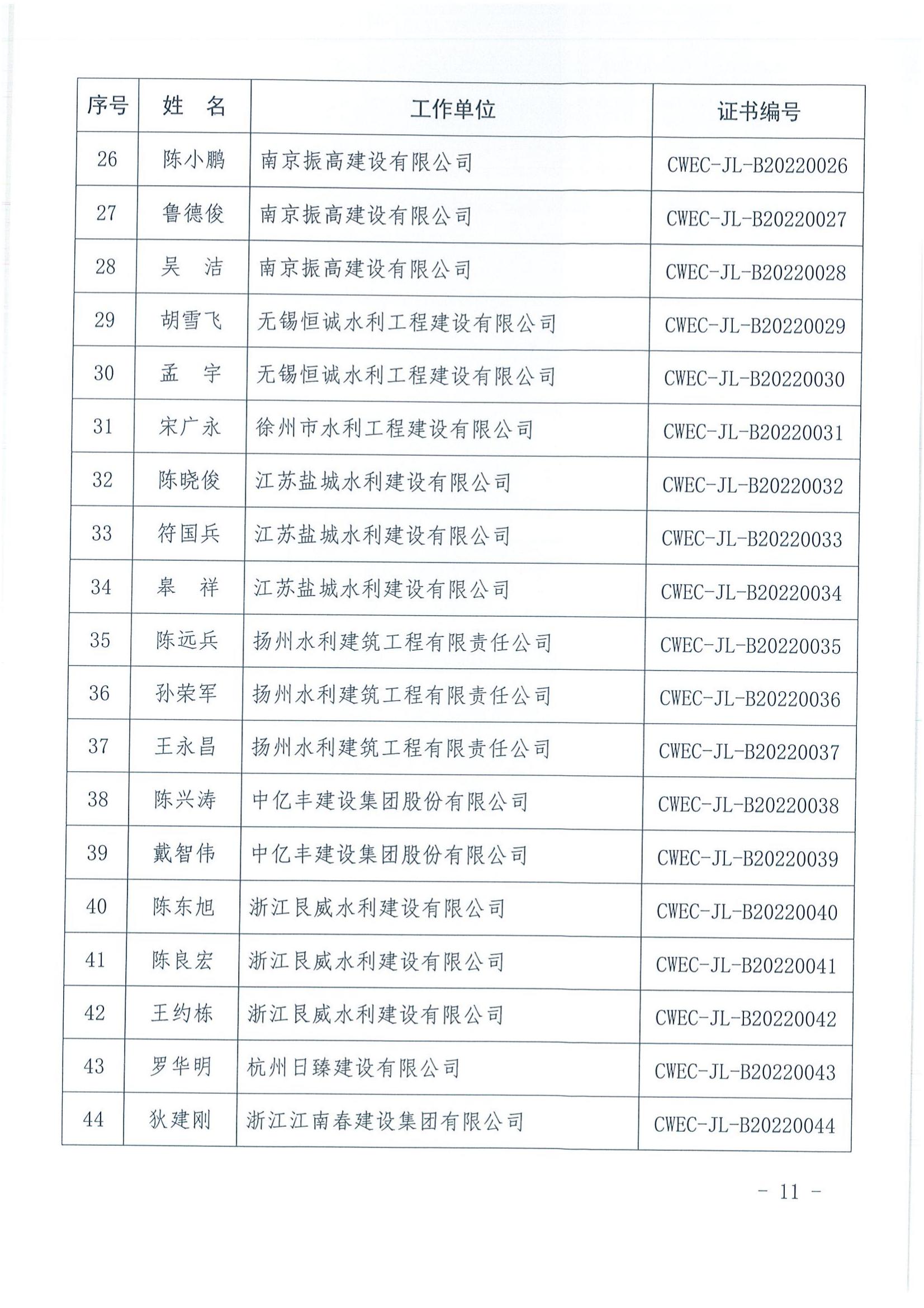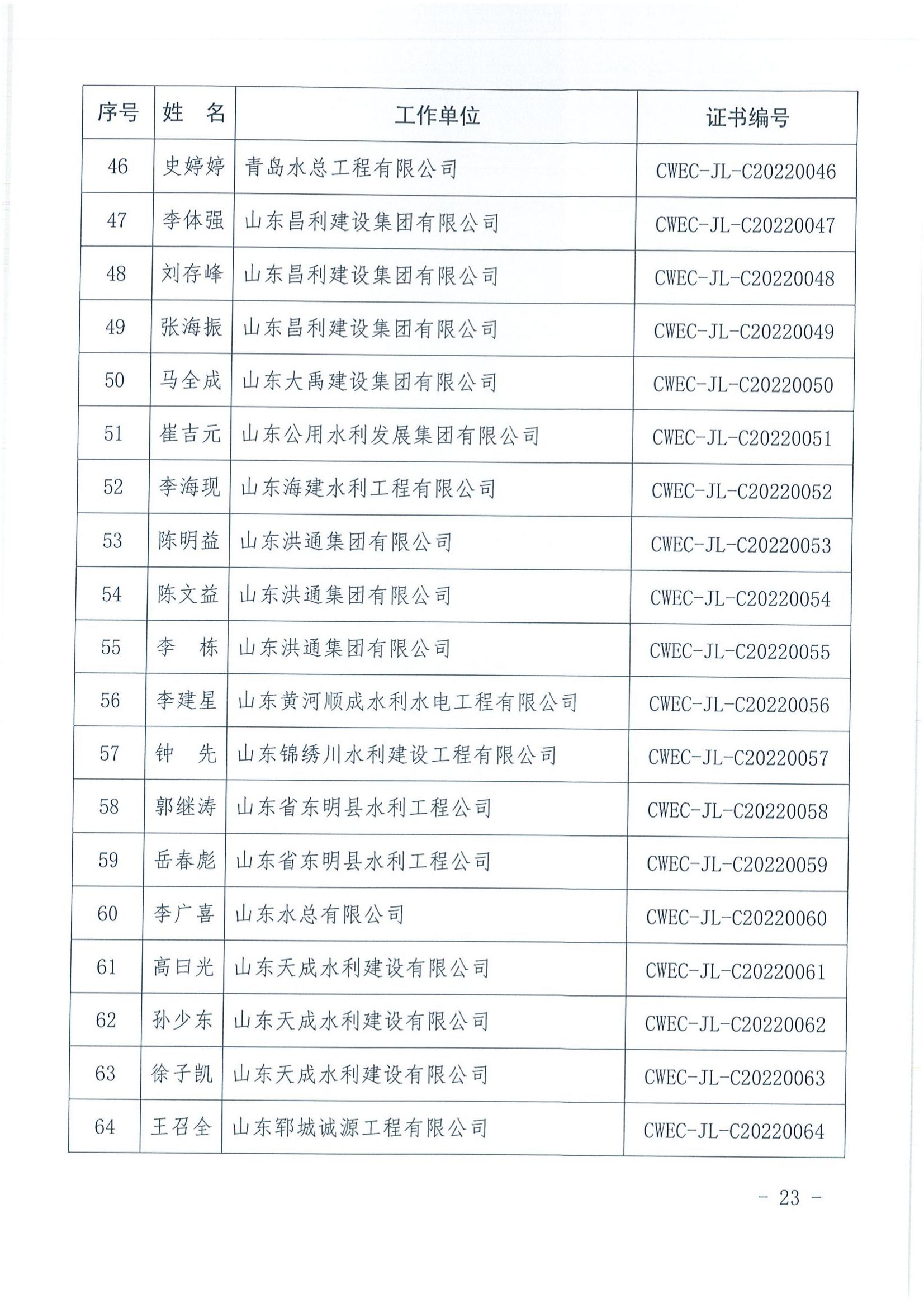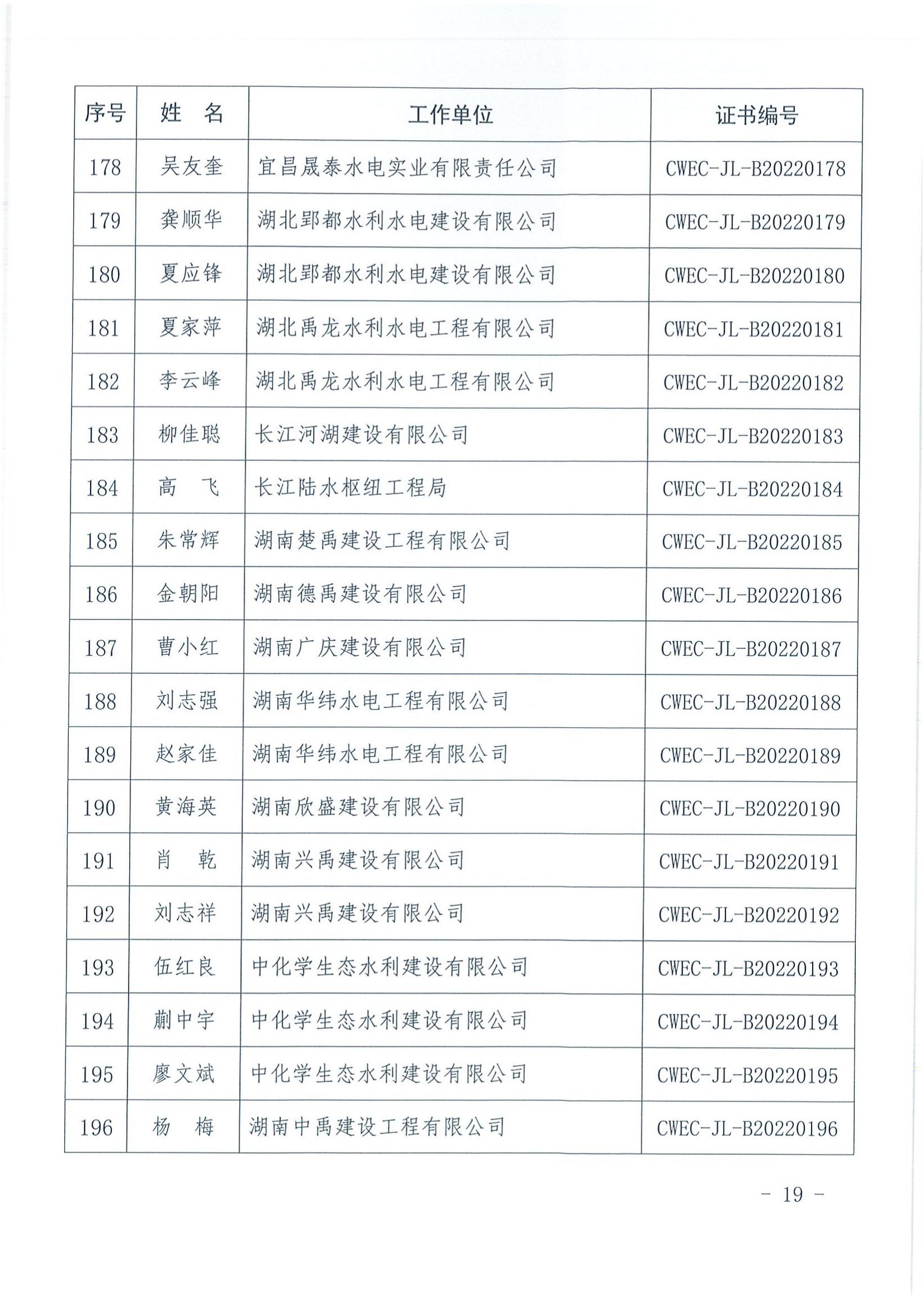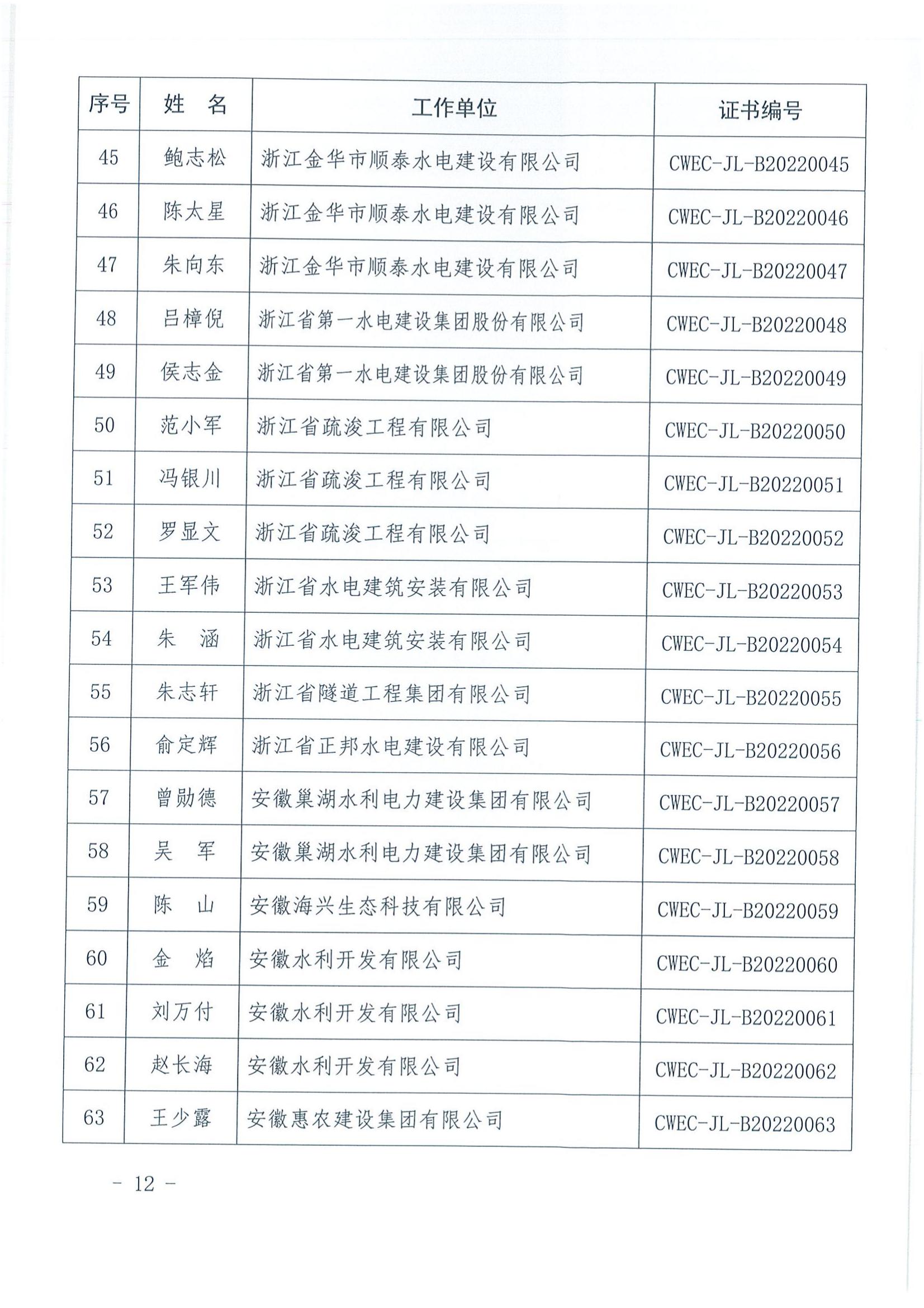 轉發關于公布2022年水利水電工程施工項目經理評價結果的通知