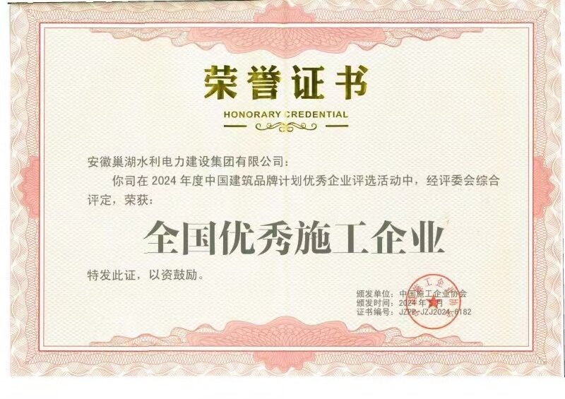 2024年度全國優秀施工企業證書